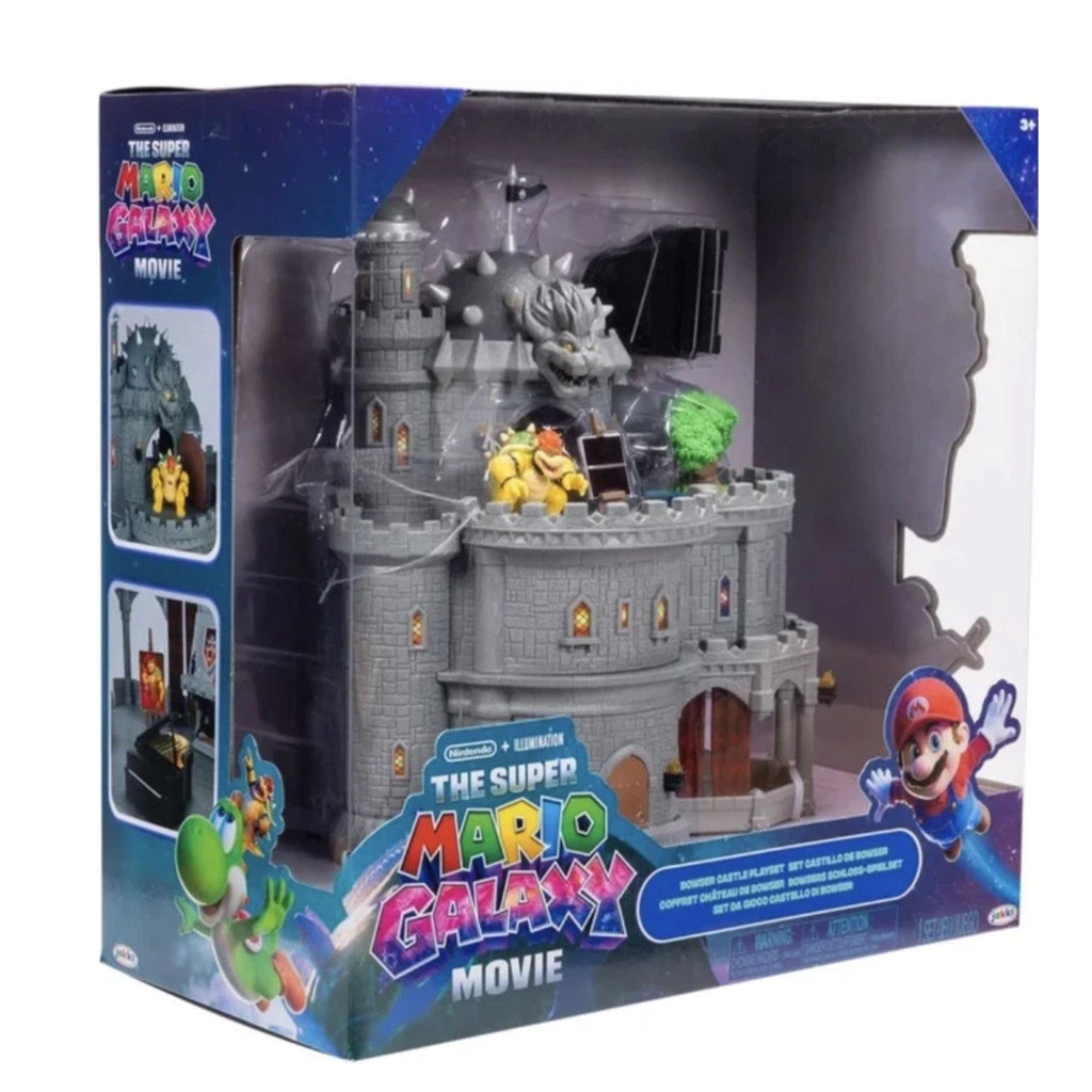 The Super Mario Galaxy Movie Deluxe Bowser Playset is fit for a mini-sized King! The castle is three-stories with exterior and interior and can be separated for lateral play. Castle features include spinning tower top, hinged door and fireplace. It's the perfect setting for Bowser to stay busy while playing the two-button chime-based piano, painting with the numerous heat-activated paintings and cauldron or garden with his bonsai tree.