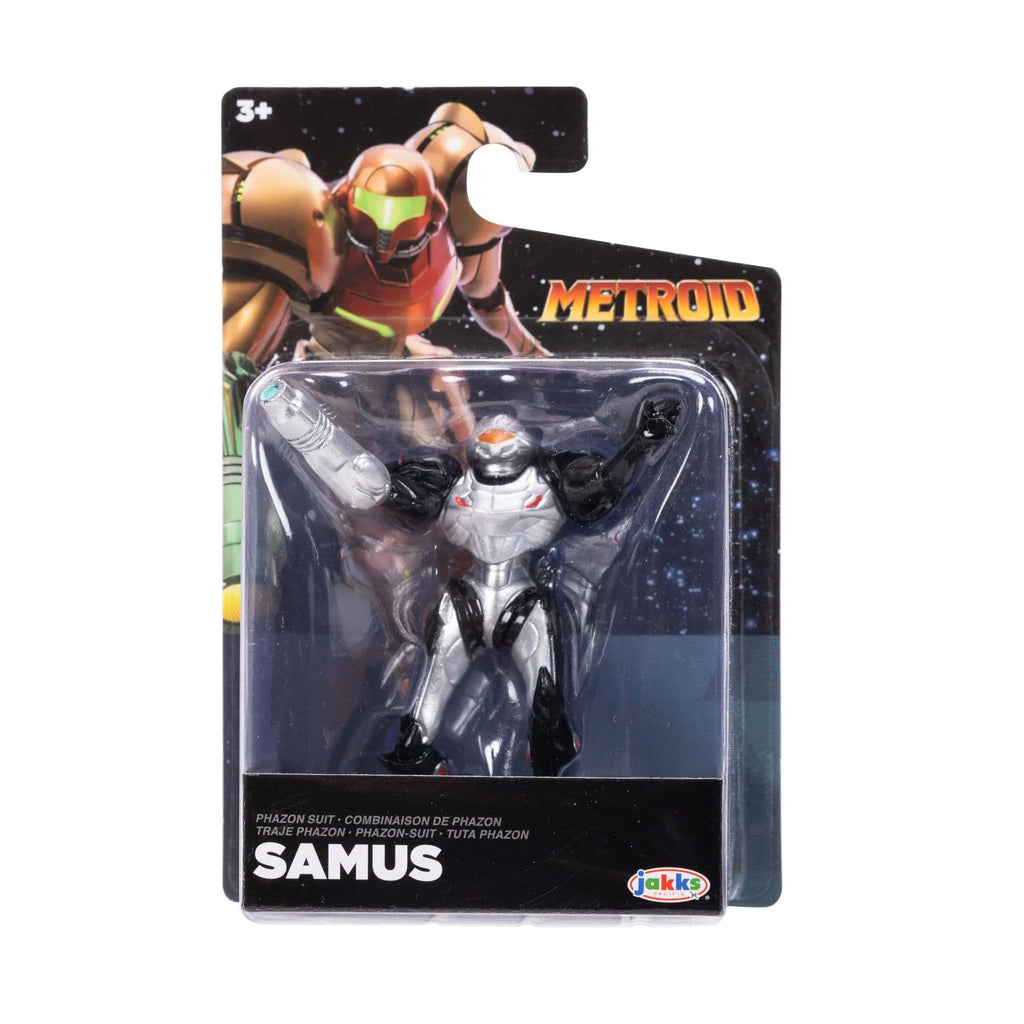 Samus Aran is the galaxy's toughest bounty hunter. The Phazon Suit upgrade grants her incredible abilities, such as 50% damage reduction and the powerful Phazon Beam. Collect all your favorite characters in the Metroid 2.5” line with up to 3 points of articulation. These authentic figures are sure to please kids and gamers alike with some of the most iconic Nintendo figures. Collect them all!