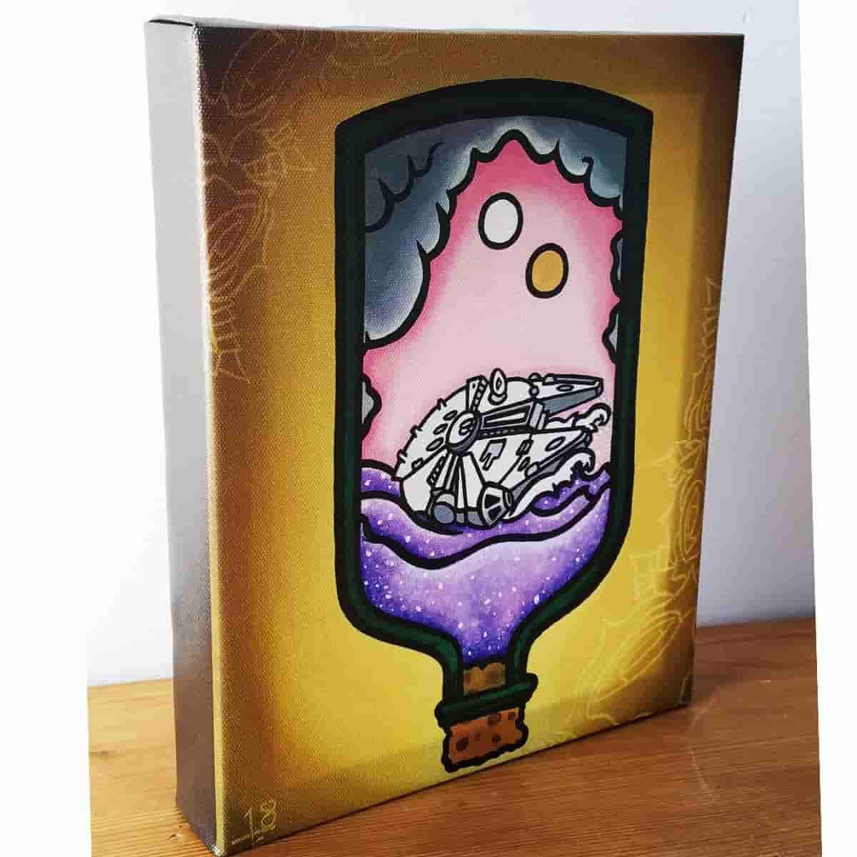 "Rebels Moonshine" Ship-in-a-Bottle Gallery Wrapped Canvas Print by artist JesseJFR